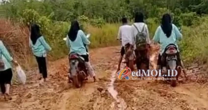 Rambang Kuang,RedMoL Semangat membara siswa-siswi SMAN 1 Rambang Kuang, terutama dari Desa Lubuk Tunggal, Kecamatan Rambang Kuang, tak pernah padam meski jalanan berlumpur menghadang. Kondisi jalan yang memprihatinkan ini semakin parah di musim hujan, menjadi mimpi buruk bagi mereka yang ingin menuntut ilmu.senin(15/12/25)